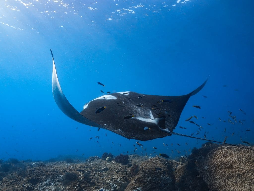 No one can guarantee wildlife. Manta rays are frequent here and we’ll plan dives around the conditions to give you a good chance to view them, but ocean life is always wild and unpredictable. For mola mola (sunfish), season is generally July–October and we only dive specific sites when conditions and experience levels match.